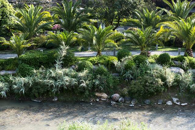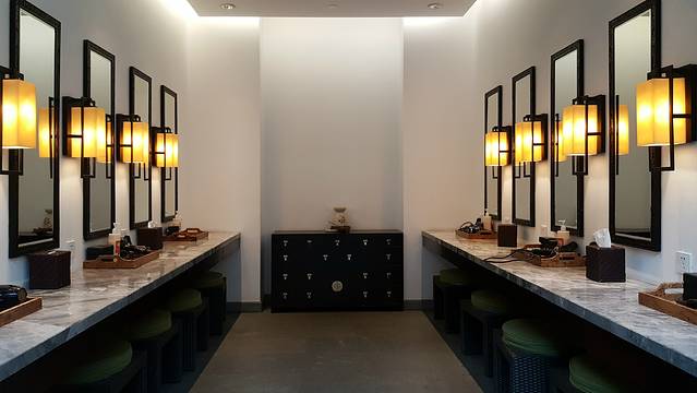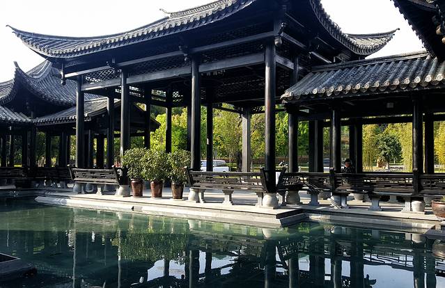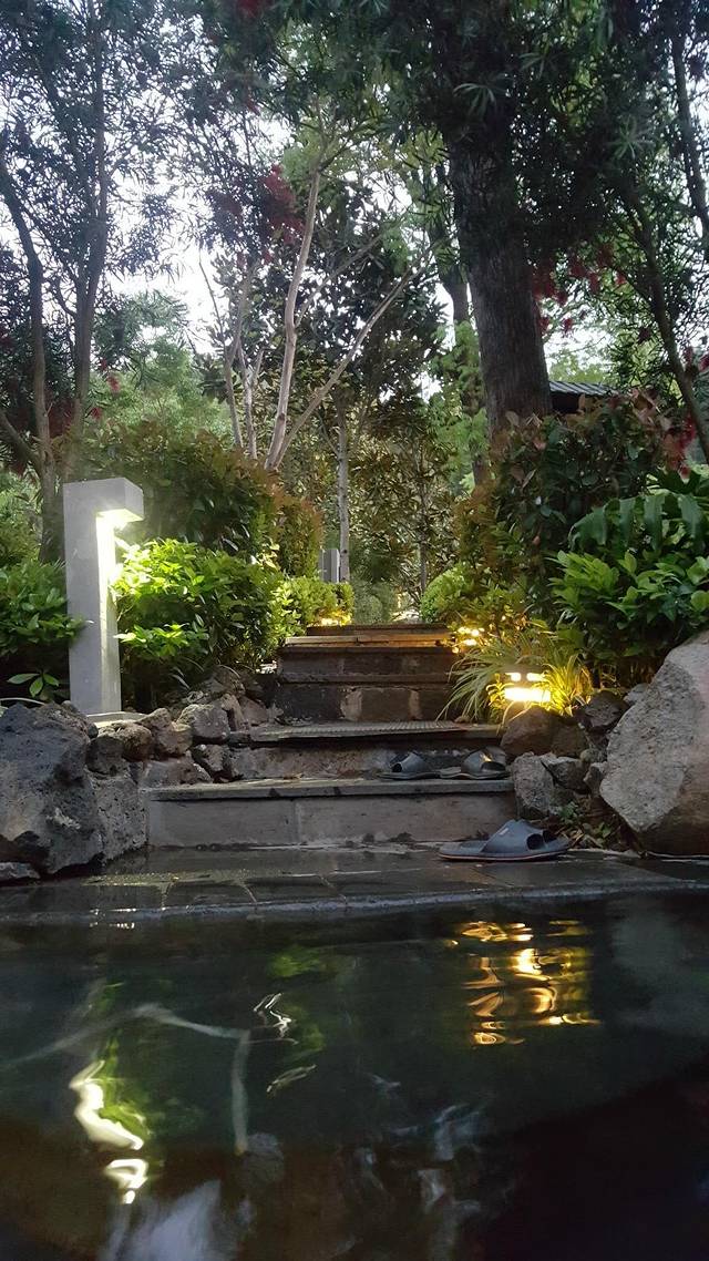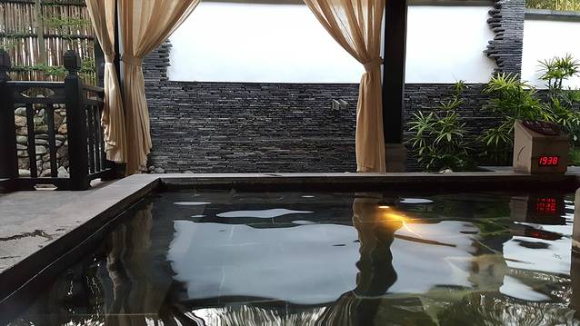 悦椿温泉,不愧为悦榕庄酒店的温泉,极度注重园林景观设计,环境好得没话说。唐式古建筑风格恢宏大气,以中国传统诗歌、国画为灵感设计,室内汤池颇有皇家风范,室外汤池于园林中星罗棋布,曲径通幽。水质清澈,各式香薰与中式汤池还真不是摆设噱头:人参汤池很明显的人参味道,池水有着人参香包沁出的微红。薰衣草汤池水中、空气里丝丝缕缕薰衣草香味。森林公园片区汤池均有藤编半圆贝壳形状的穹窿顶,各式小汤池巧妙利用树木花草岩石做遮挡,美观精致的同时又各有各的空间感。