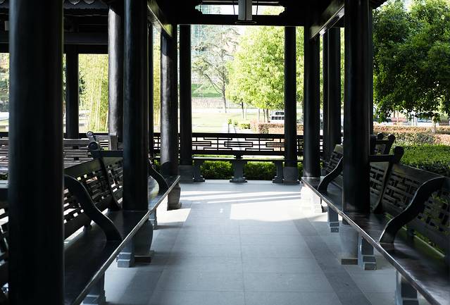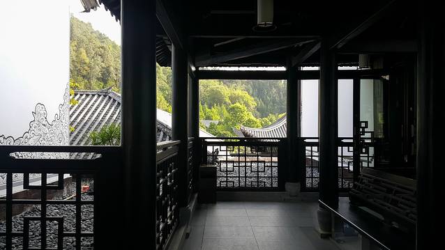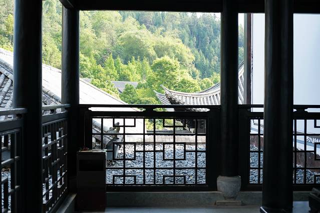 相当大气的门厅,沿着两侧的抄手游廊进到温泉前厅接待处。腾冲白天日照强,游客常于廊下歇息,直至阳光烈度消退,近傍晚,气温明显凉爽,才进到温泉内。冬日泡过温泉之后,廊下小坐,四下风景正好