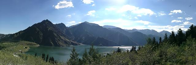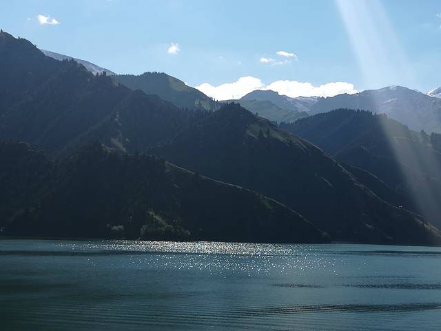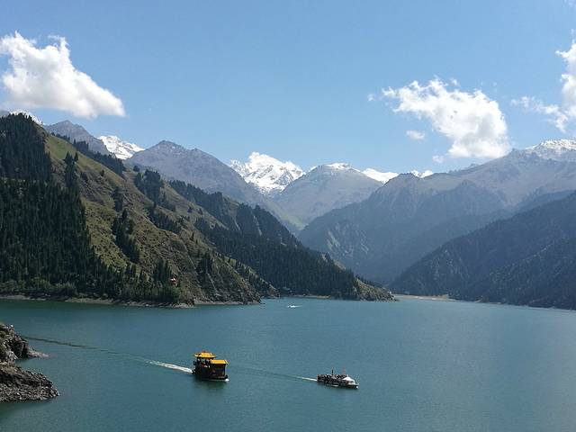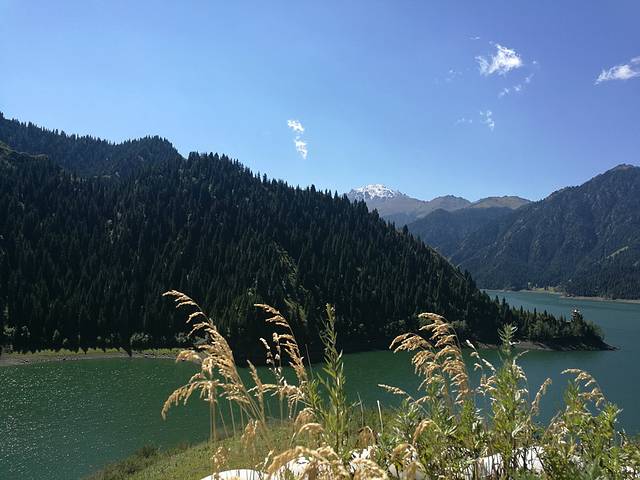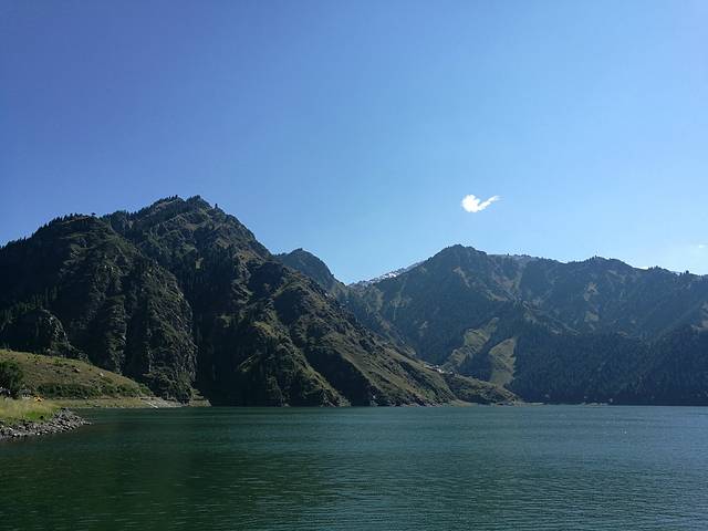 天池,这是第三次来,过得真快,毕业没多久第一次和同学一起玩,二十多年了;第二次和旅游管理班的学生,有十几年了。天池最吸引我的是博格达峰,不知为什么。或许是那亿年的沉稳,那经历漫长岁月的变迁,无声地力量;每每从山脚下,从空中,看着它白雪皑皑的身影,心中便满满的感动,感到自己的渺小,人生短暂,以平和的心态面对自己的生活,人生没有真正的完美,那我们就去尽可能的创造完美,努力就好。下了一夜的雨,天晴后能见度好,远远地博格达峰清晰可见。