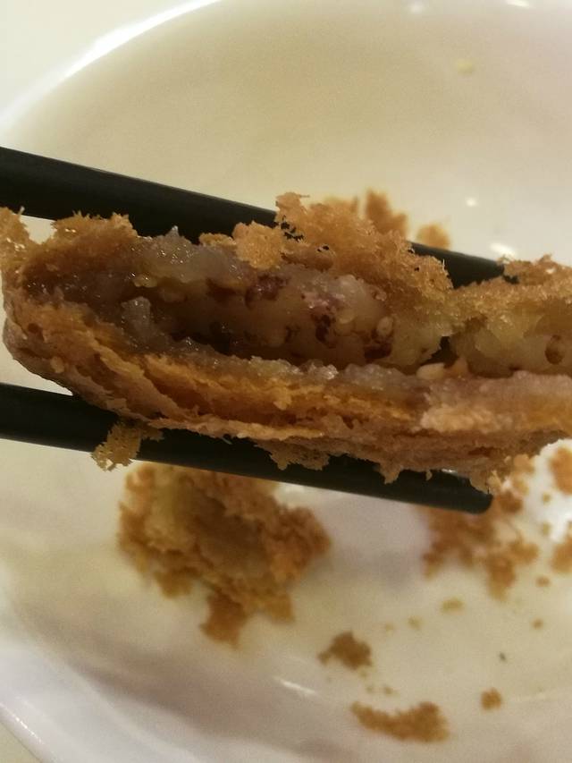 油饼,看着油油的,吃起来香喷喷的,朋友看我吃得香,尝了下,第二天去天池买了好几个带上了。