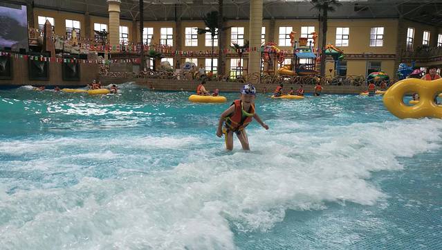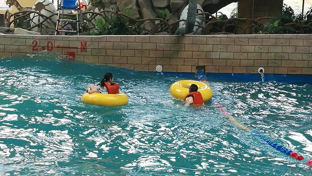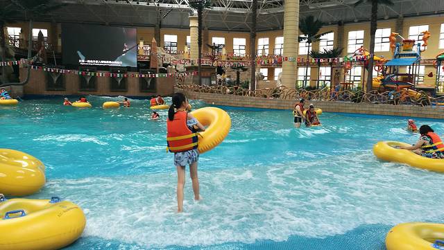 休息了一晚,看了天气预报,调整了下行程,天池有雨,我们改到天池景区旁的五江温泉,娱乐地方,泡温泉,玩室内冲浪。