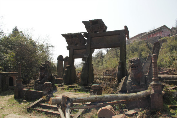 走走停停,停停看看,看看吃吃喝喝,就这样,一步一步往上,口里喘着大气,脚下闹着革命,希望就在眼前到了林场,修整了一下继续登上顶了,经过五道桥,终于到顶了,征服的感觉真好,挑战成功的时候真是激动啊。顶上的场面,说实话,不咋地,甚至很破旧,到处断壁残垣,大小石头横七竖八的,连那是大门也没了全貌,只残缺地在那里立着,像个垂危的老人,下面还有写着“危险”的警示牌。进到最顶上的庙,交了两块钱的门票。里面也聚集几十人,里里外外的,到处都是。我们就随便拍了几张照又往下走了,因为我们到了林场就有几个人走不动了,就在林场等我们。我们回到林场感觉饿得不行,赶紧吃饭,还喝了点小酒。三点十分,我们开始下山了。下山轻松?我想你不会这样想的。只能说相对上山,花的力气要少一点,汗水出的少些,背上的东西轻些,脚可是一点没轻松的。下山对脚的伤害比上山打,下山得十分小心脚下,对脚的用力也不好控制。下了一段时间,站着不动,能很明显的感觉到你的两条腿在不停地打颤,控制不了。