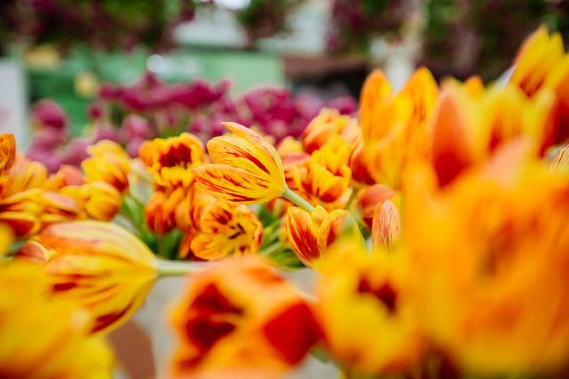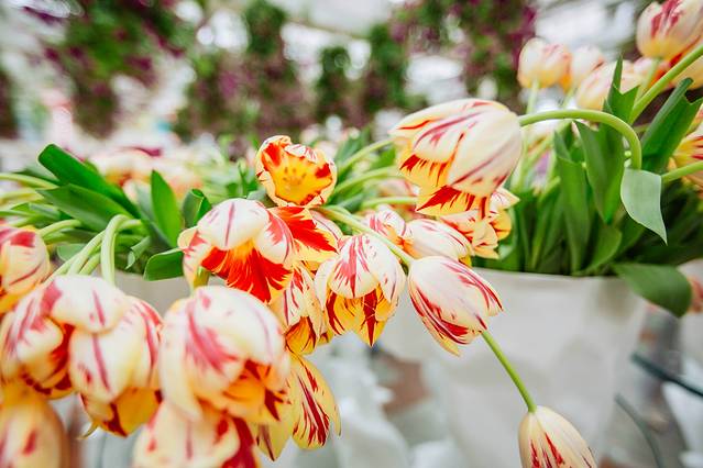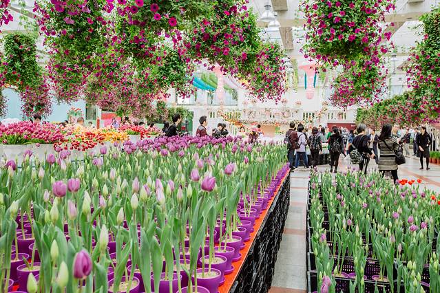 推开了花博秀的大门,摇身一变,我便站在了郁金香花博秀内。走进温室花房,郁金香跳跃的色彩就从眼前跳跃着。不断刺激你的视觉感官。