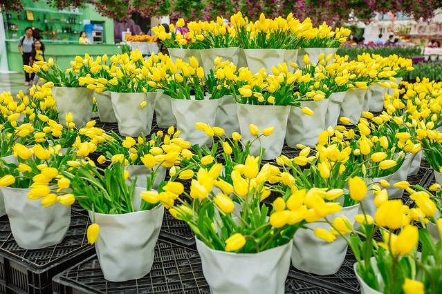 忍不住闻风而动,感受郁金香花的盛宴。去感受暖冬的芬芳,闻着那诱人的郁金香花香。我倒是想看看,曾经在荷兰看过的郁金香,只会在4~5月盛放的郁金香,是怎么做到在南国的冬季开花的。