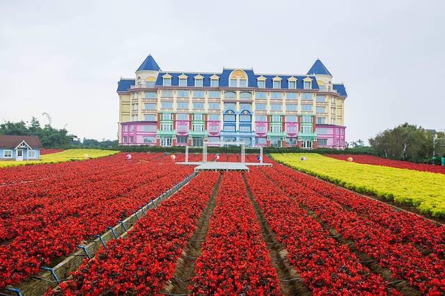 百万葵园花之恋主题酒店,给你童话一般的体验。花之恋主题酒店的外观是彩色的,欧式城堡建筑,在阳光下呈现五彩缤纷的模样,各位地吸引人。酒店一共有6层,每层都是不一样的鲜花主题房,这次我们看了郁金香的花海,所以晚上睡进郁金香主题房内,特别有新意。