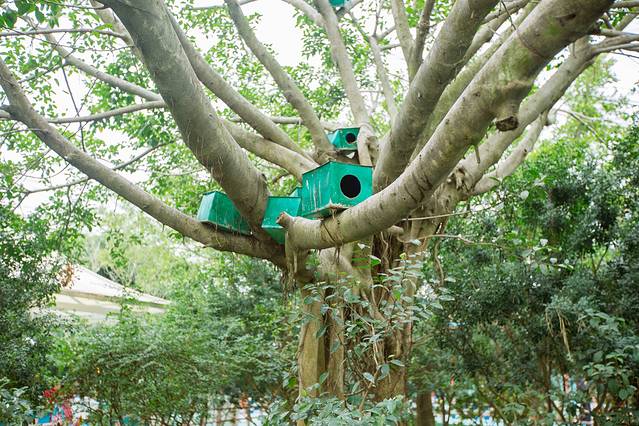 除了小松鼠以外,还有鹦鹉住在这里,两只漂亮的绿色鹦鹉你侬我侬,含情脉脉地看着对方,丝毫不会因为游客的到来,收起彼此的爱意。