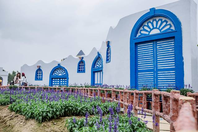 这种紫色看久了是会让你心旷神怡的,没有烦恼,朴素不失高雅,但却让我驻足痴望。紫色的薰衣草花田中,建造了很多漂亮的装饰,那些是欧式的小房子,把希腊特色的蓝白小房子放到这里来,浪漫无比。
