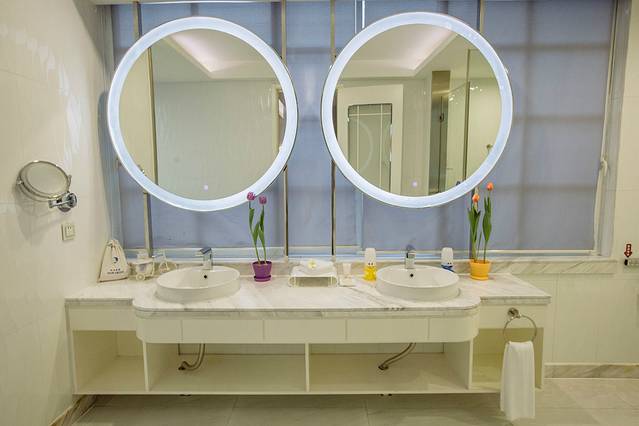 浴室特别宽敞,而且设备先进,纯白色整洁美观,洗手台收拾得干干净净。洗漱用品和浴衣拖鞋都是准备3人分,适合亲子一家大小来游玩,同样也可以给到情侣浪漫的住所。
