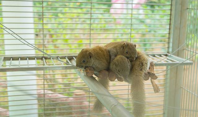 还有几只小松鼠懒洋洋地堆在一起睡觉,你摇一摇他们他们就动一下,总是睡不醒的模样。他们很喜欢吃百万葵园里面的瓜子。