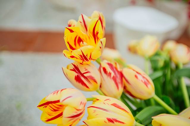 喜欢郁金香的原因很简单,因为它颜色鲜艳,热情奔放。眼前陶瓷器皿内,装满了五颜六色的郁金香。