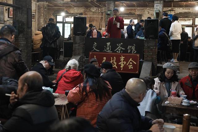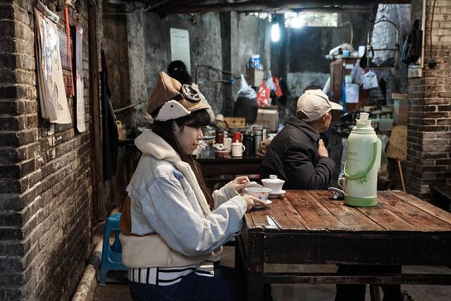 坐在茶馆里,不仅有当年几经变迁的老茶客,也有像我们一样想要探寻老重庆故事的新生代,现代与历史的交融景象成为交通茶馆现在的味道
