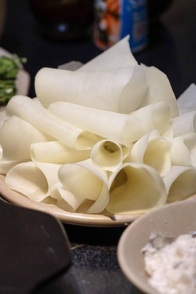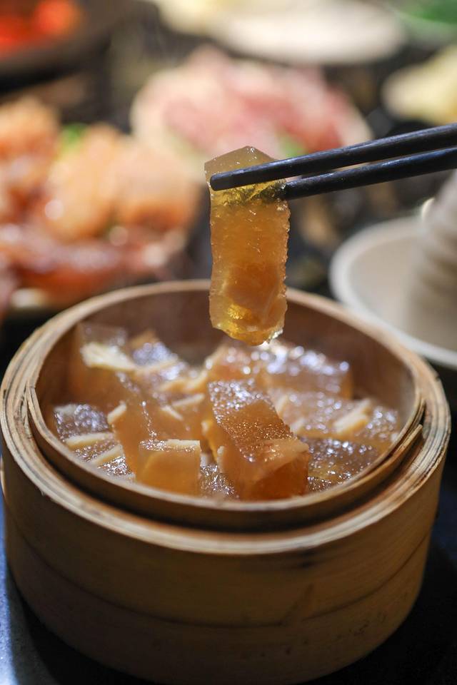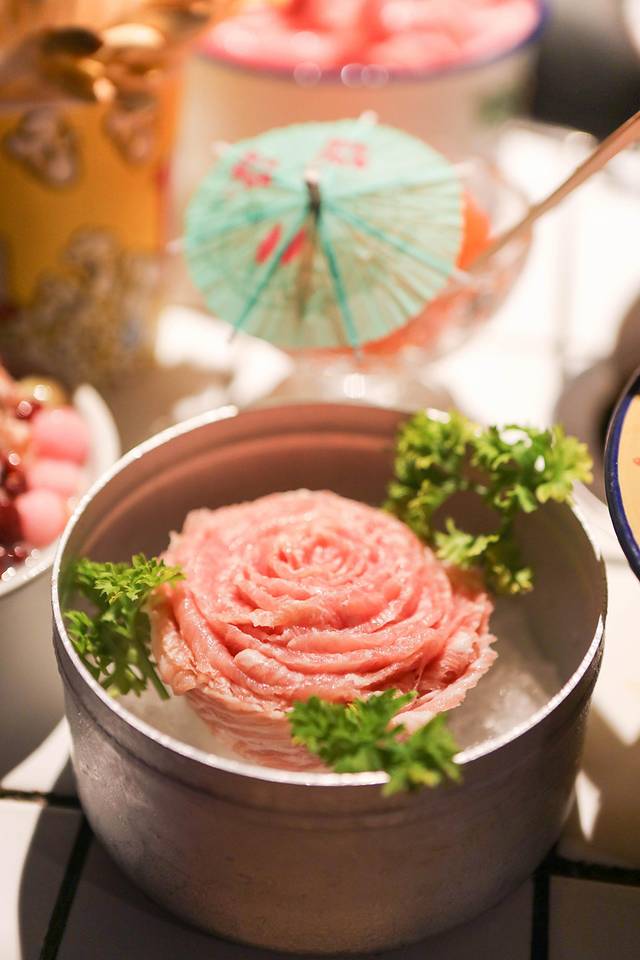 雪山牛舌,将腌制的牛舌放在碎冰上,涮的时候一条条的夹起来也很方便