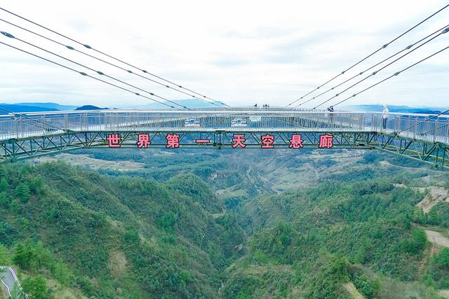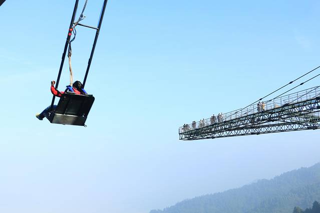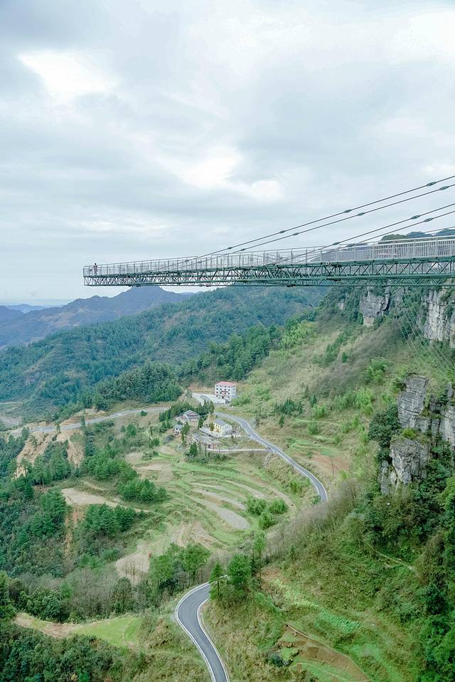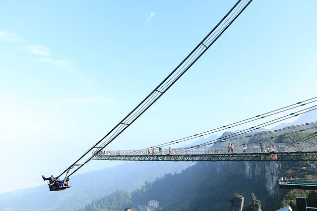 大A型的天空悬廊,全玻璃地板,悬空于300米的悬崖上峭壁上并向外挑近70米的空中。走上去三步一挪,越靠近尖部内心越抖动。看到很多人都在冒险拍视频,抖音网红款就是这么“拼”出来的哈哈