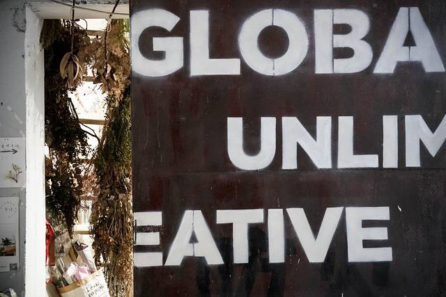 生锈的大铁门在刷上文字后,变得时尚很多,这样的大门在二厂并不少见,门后的景观才值得好好探索。
