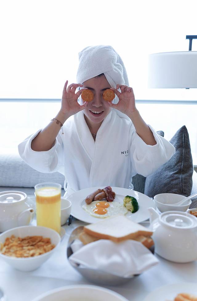 前一日的游乐场之旅让我和巴黎小姐都疲惫不堪,今天决定还是在酒店偷得浮生半日闲吧,毕竟年纪大了不太适合暴走了哈哈哈。旅行嘛,谈不上雅致也要自在才行,况且我们住在重庆最洋气的酒店,拥有整个重庆最美的景观,房间的落地窗不好好摆拍一下有点浪费。于是和巴黎小姐一拍即合提前预定了早餐的room service