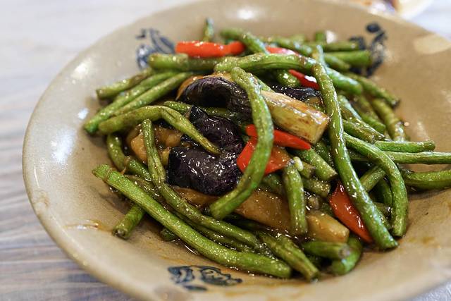 茄子炒豇豆:完全适合不吃辣的人,两个一起炒还是很开胃的。