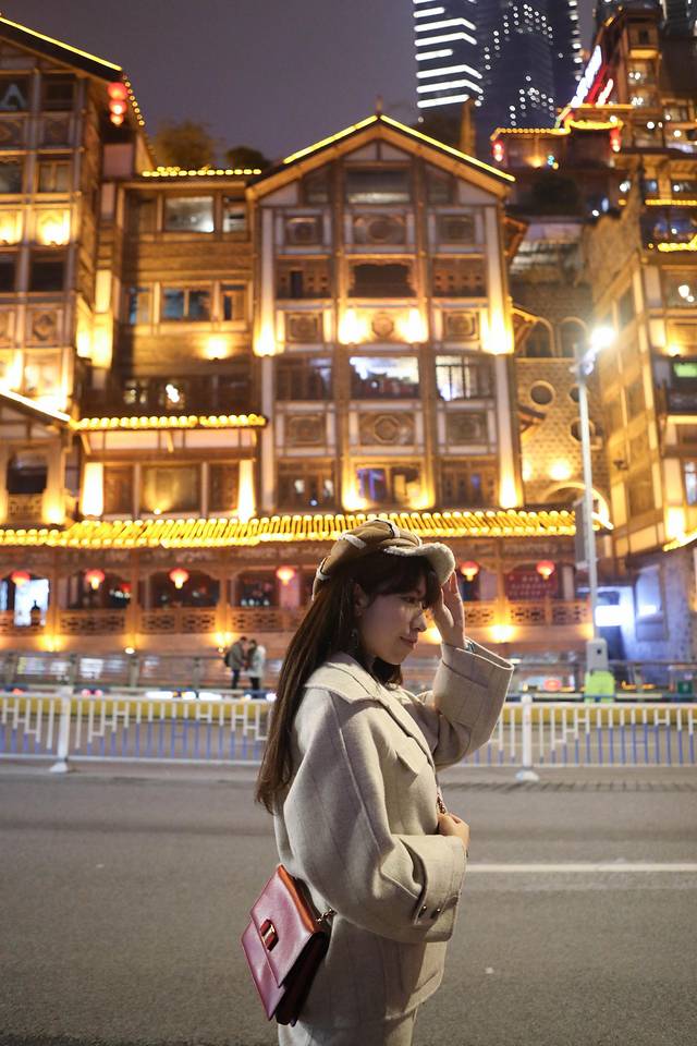上次来重庆真是太不走心了,大名鼎鼎、鼎鼎大名的洪崖洞竟然成为漏网之鱼!巴黎小姐说去晚上可以去洪崖洞看夜景的时候,内心的对白是这样的:为毛要去山洞看夜景?南山也可以嘛~这个疑惑实在是太土老帽了哈哈,原来洪崖洞是一座屹立嘉陵江边上的庞大吊脚楼建筑群。从高处望去,白天的洪崖洞似乎没什么特别,夜幕降临、华灯初上的时候,这个白天默默无闻的楼体成为重庆最璀璨的明珠。加上近几年新生代们把洪崖洞与《千与千寻》日漫二次元进行对比,抖音上面小哥哥小姐姐们又将这一动漫“原型”进行爆款宣传后,走红已是必然~
