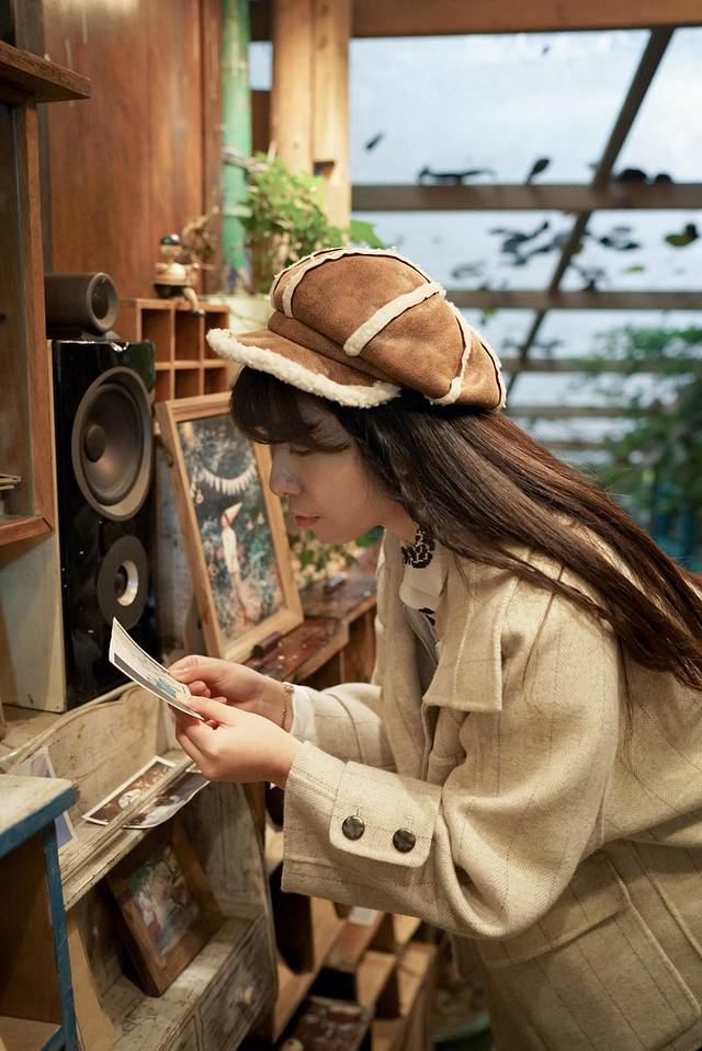 “山坡”一路走来都是满满充满情怀的旧物:照片、做旧木桌椅和布满石阶上的植物。林子里相见大概就是这样的意境吧。