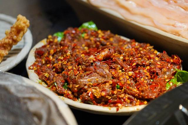 秘制的火锅底料,别看满满的辣椒红,确是微微辣呢。店员介绍这里的火锅汤都是一客一锅的,但是据我听到的坊间传闻都是越老的火锅汤底越入味。店员并不否认老汤味道更好,回收火锅店老汤的生意也是有的,但是时代在变化,技术也在改变,现在这种汤底也能做到老汤的味道,而且相对健康。老汤火锅可能我吃起来会有一些障碍。