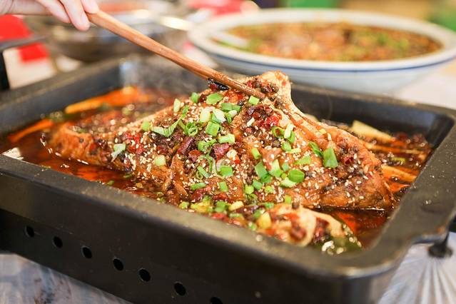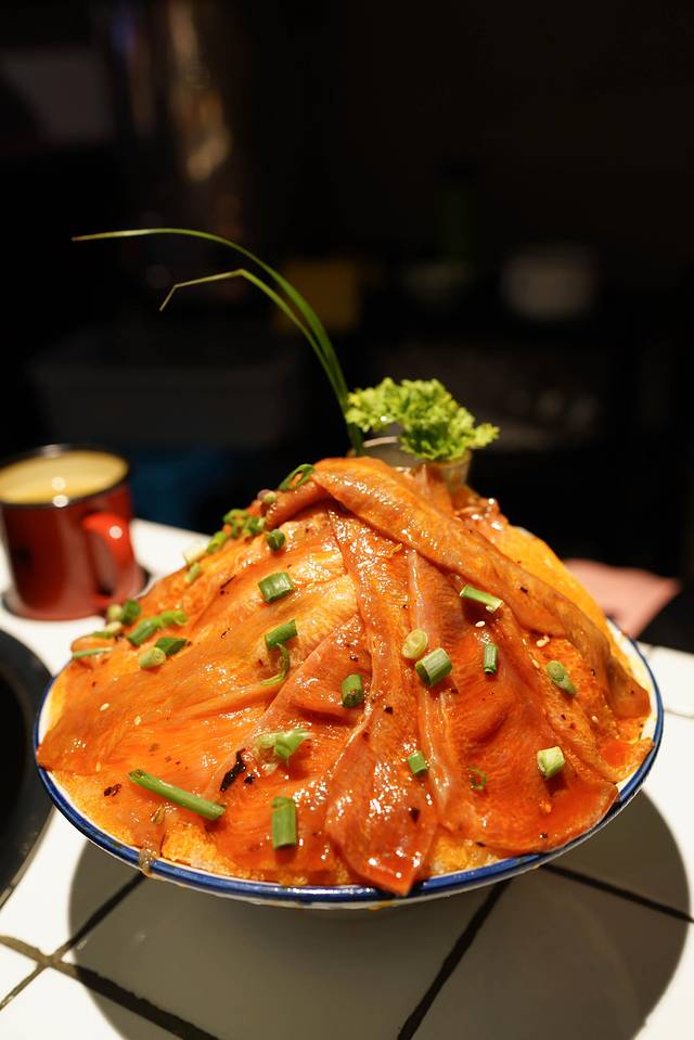 霸王耗鱼儿:招牌菜,每桌都必点的烤鱼,知道我不太能吃辣店员做了微辣,鱼肉味道不错,皮被炭烤的有一点点焦脆,再配上几口豆皮儿、海带或土豆,非常完美了
