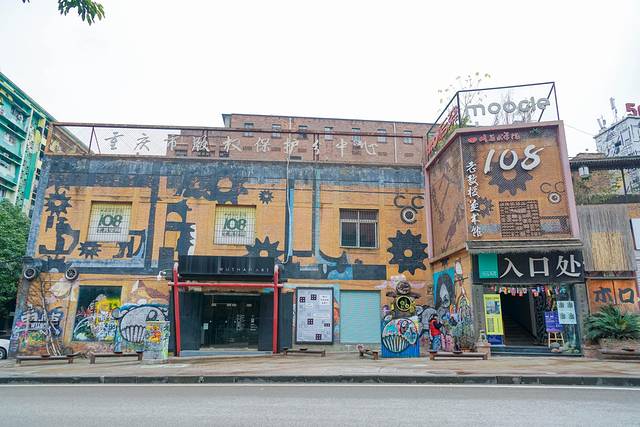 交通茶馆以外的世界就是涂鸦街的天下,往上走几百米,下面再几百米仿佛都是川美的天下。从居民楼到老厂房,还有美院那些艺术雕塑都是天马行空的产物。老川美街区的涂鸦虽然比较老旧了,但这个地方仍是年轻人慕名打卡的一片网红街区。一步一景,尽情享受这个五彩世界吧!