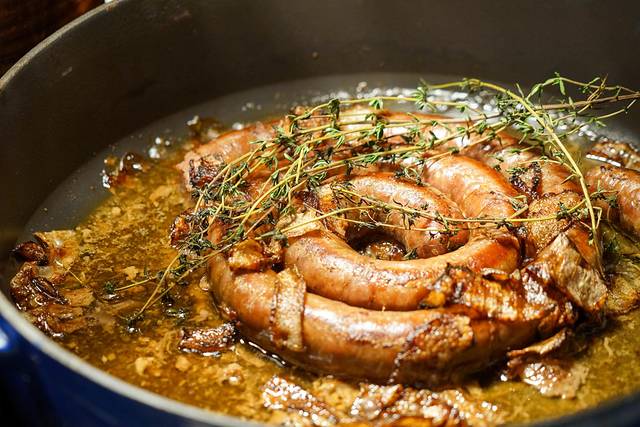香肠拼腊肉:铁锅蒸出来的,很香很香,腊肉也是自家晒得,店门口的那一排排风干腊肉就是最好的证明