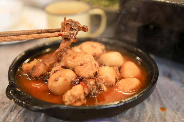 芋儿烧鸡:芋头和鸡肉放在一起炖制的,糯糯的芋头和鸡肉搭配也是第一次吃到。鸡肉应该是走地鸡,肉很紧致哈哈。