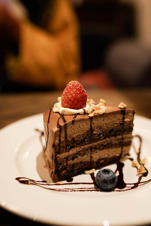 点了一份下午茶套餐,包含两块蛋糕和两杯饮品。巧克力蛋糕是巴黎小姐的最爱,喜欢酸甜口的我选择了柠檬酸奶芝士蛋糕