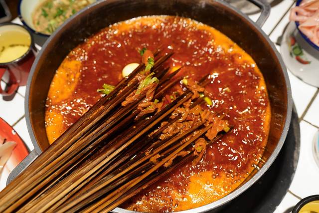 这一锅全牛串串既入味又新鲜,我们吃了很多