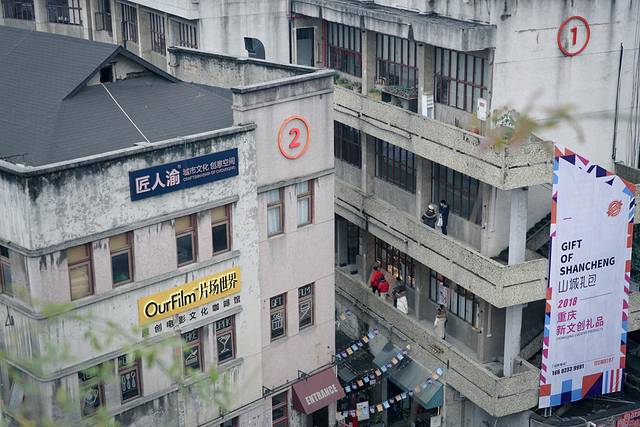 二厂原来是陪都时期的印钞厂,建国后是重庆市印刷二厂。现在废弃后的楼体并没有进行修缮,而是被艺术家、设计师在保留原有调调的基础上进行了改造。楼体上的标牌有种好莱坞拍摄片场的感觉