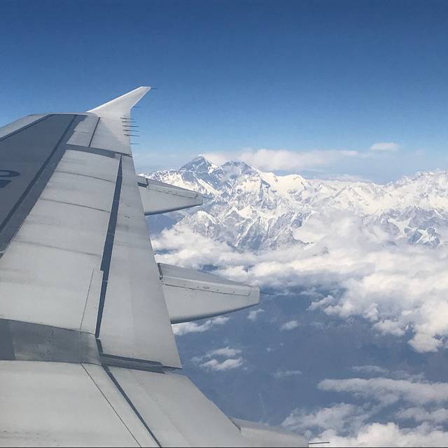 大夜里就踏上了征程,开放选座以后大家记得去时选右侧靠窗座位,于是我就因此看到了日出、看了雪山、看到了喜马拉雅山,绝对超值哦!