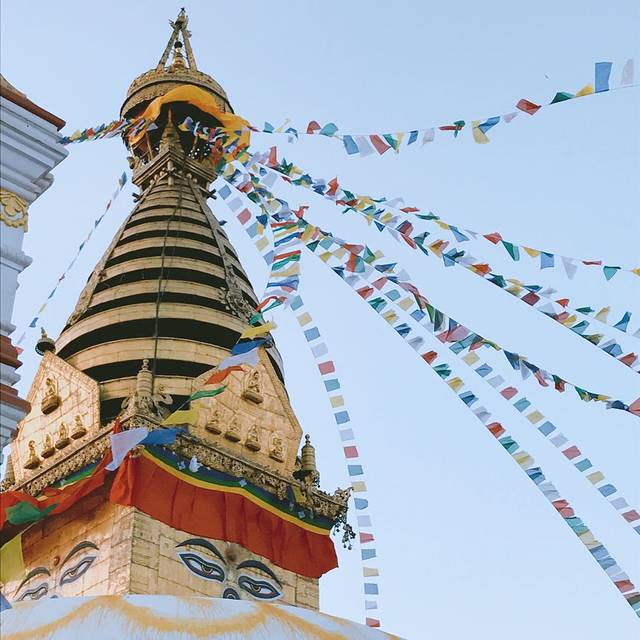 泰米尔值得一逛,可惜我们只作为中转站就匆匆略过来到了最为期待的猴庙。5点多到达时间刚好,加德满都的全景、整片的日落、自由的猴子、凝视众生的佛塔智慧眼,或许只有用不虚此行四个字来总结了。