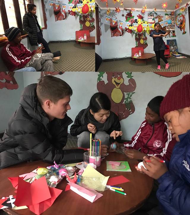 今天的两个小朋友,一个是第一次来给我们留下深刻印象的小姑娘,充满魅力充满自信的最佳舞者,她有唐氏综合征,但她的音乐舞蹈细胞非常不一般,而且跳舞时的自信就告诉我们我是这里的star。她的模仿能力也很强,我折纸画画她看了看就也照样子跟着画,虽然画的不好但意思都是相似的。我们也从她这里得到了来自尼泊尔的最扎实的拥抱。另一个小男孩就更严重一些,有学习障碍、语言障碍,行动说话学习能力都比较弱,我们更多就是陪他去做一些事情。