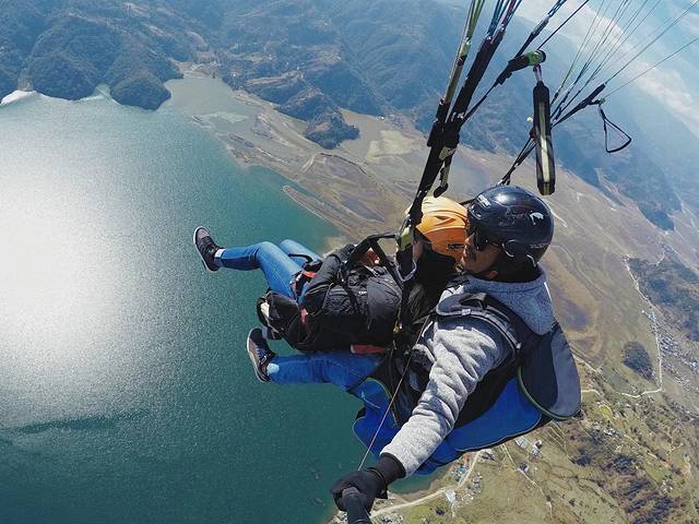 滑翔伞sunrise家很大比较出名,如果你担心很多可以考虑这家,价格也是相当可观的,10050rs一人。但最终我们体验下来其实完全不用多虑,首先安全性几乎都是没有问题的,都是飞了几年的教练,无论是尼泊尔人还是外国人都是很专业的,飞行体验也是很好啊,大家自己选择就好。我们对比了几家5500rs、6000rs都有,遇到的中国小伙伴也基本上是这个价格。所以反复徘徊后,我们在这家还挺大的店里一起定了日出和滑翔伞,和善的大叔一口一个sister不能再便宜了,我们还是坚定地砍了一些下去获得了低于预期的价格。日出1500rs(大家往这个价砍就行)+5500rs三人,最后以17500rs拿下,日出接送、滑翔伞接送、摄像照相全都包括,一个人合350多人民币,是不是超便宜!