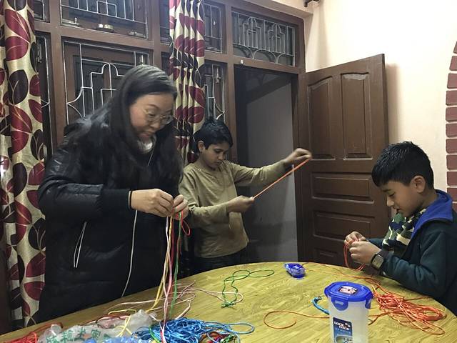 如同你知道的那样,尼泊尔很欢迎中国人,也喜欢中国,无论是房东一家还是学校里的孩子都对中国和汉语很好奇。我们去到的学校虽然开设汉语课很久,但学生的汉语基础并没有很多,只是简单的你好吗,你好,再见,谢谢,当然很有可能是学过就忘了,就像昨天学过的众多尼泊尔语一样……所以我觉得与其教很多的话语,不如在玩中学让他们记得中文很有意思。