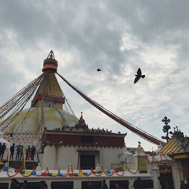 结束了所有的课程,拿到了证书,天气好像都在为我庆祝一般地放晴。于是一个人打车去博达哈大佛塔,在无数泥泞中到达了有些领土气息的佛塔,慢慢悠悠地绕着走,遇到喇嘛、遇到不同肤色不同信仰的人们……