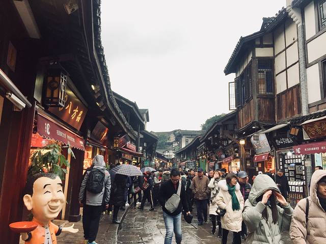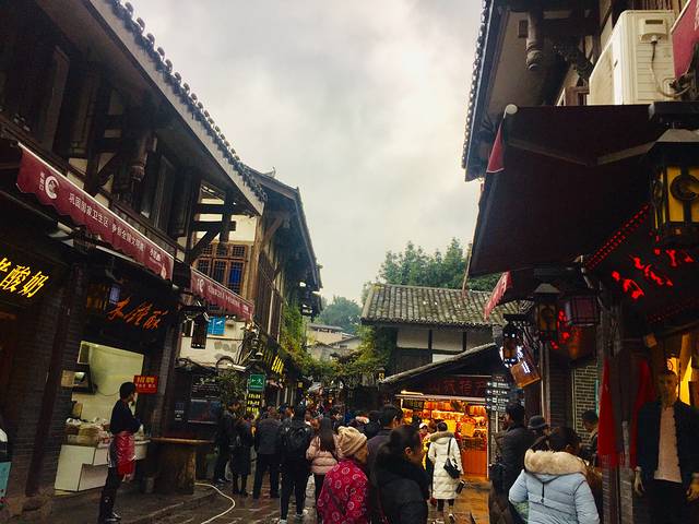 这条古街可比宽窄巷子大多了,东西种类也很多,程度手工牛轧糖,小吃,掏耳朵,兔头,腊肉,辣椒酱,这边要比成都多好多,没有兔头(我很开心)还有麻花、怪味胡豆、重庆小面,酸辣粉......