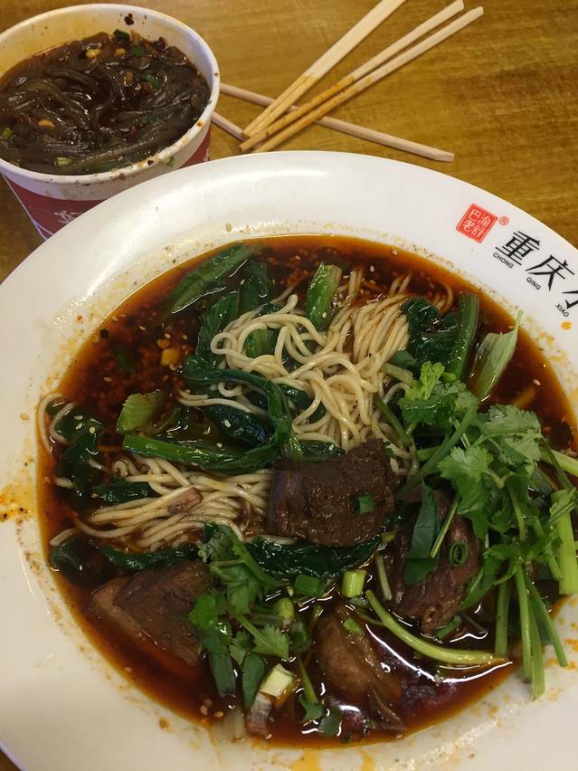 一份酸辣粉,一份重庆小面热乎乎的,吃的不亦乐乎,我喜欢吃小面,酸辣粉有点过于酸辣哈哈~~
