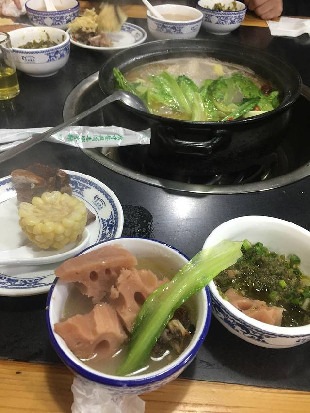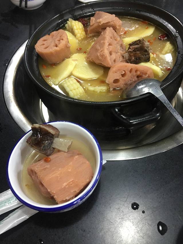 天气下着小雨,冻得我瑟瑟发抖,然后果断吃点热汤一类,南方的藕煮熟了比土豆还面,这样的藕我还是第一次吃,3个人点了个2人份,还没吃完,可见重庆多么的实惠哦~~~