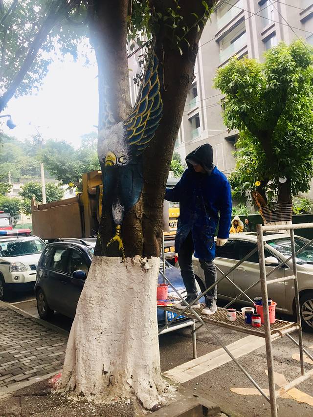 圆滚滚应该不轻呀,这棵树要哭了吧?