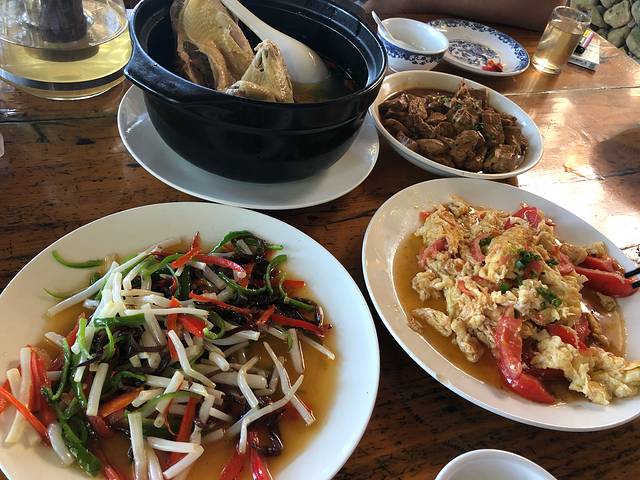 美食是不变的主题,山上的野菜脆脆的,味道很特别,同样只记得味道忘记了大名,鸡汤香而不腻,连普通的番茄炒蛋也备受欢迎,可能是食材原生态的缘故吧