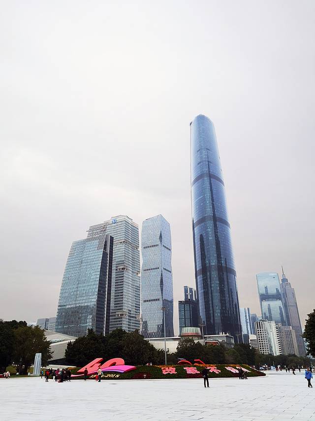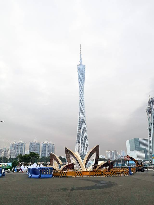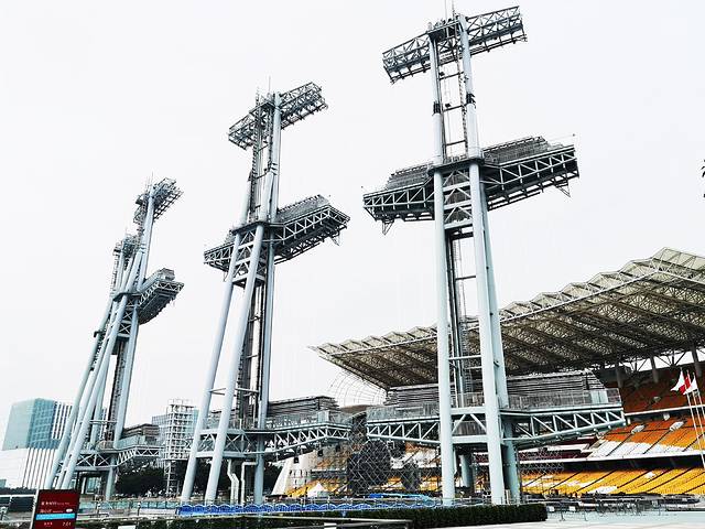 询问这三个建筑是什么,附近的人均答:不知道。后来蹭导游才知道这三个建筑是大屏幕,而那个看台就是2010年广州亚运会会场看台。