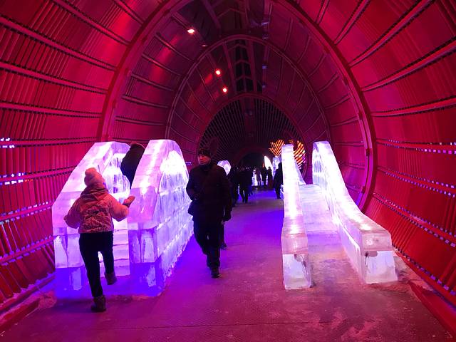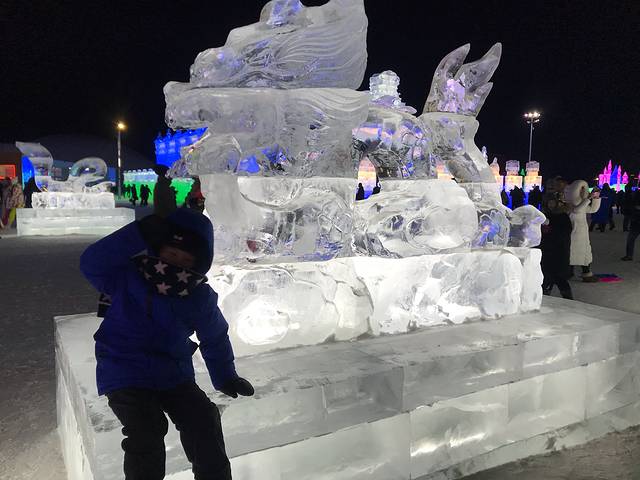 看,看白天的冰雕,晚上灯光效果下的冰雕,还有各种表演(我们一个也没看上,娃的状态只在滑梯上,其他都没兴趣,只好放弃了)。