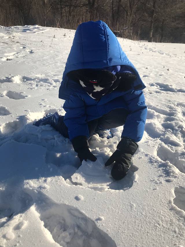 堆雪人,可惜地上的雪已经没办法滚成球了,只能堆雪堆