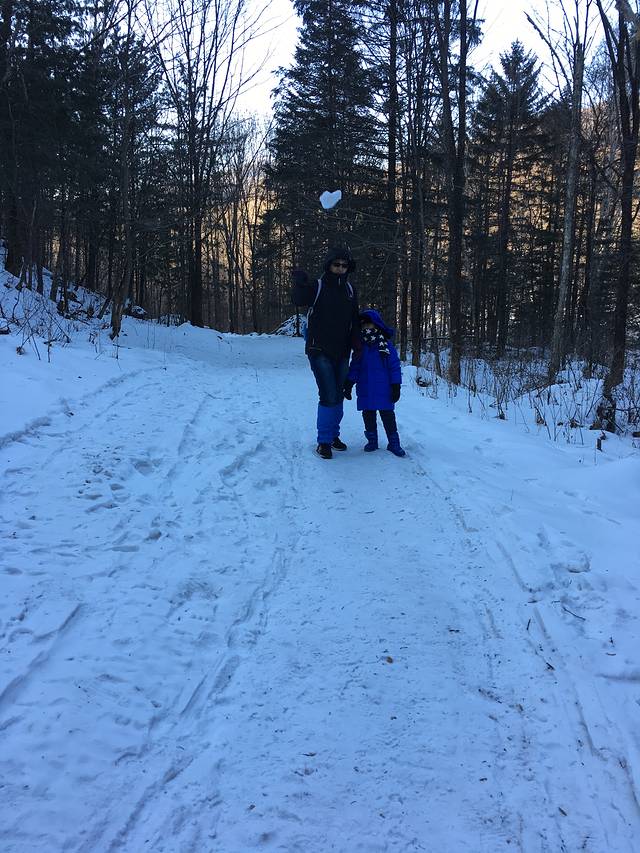 过了天桥的一个小公园,大理石上有一层薄薄的雪,引起了娃的兴趣。