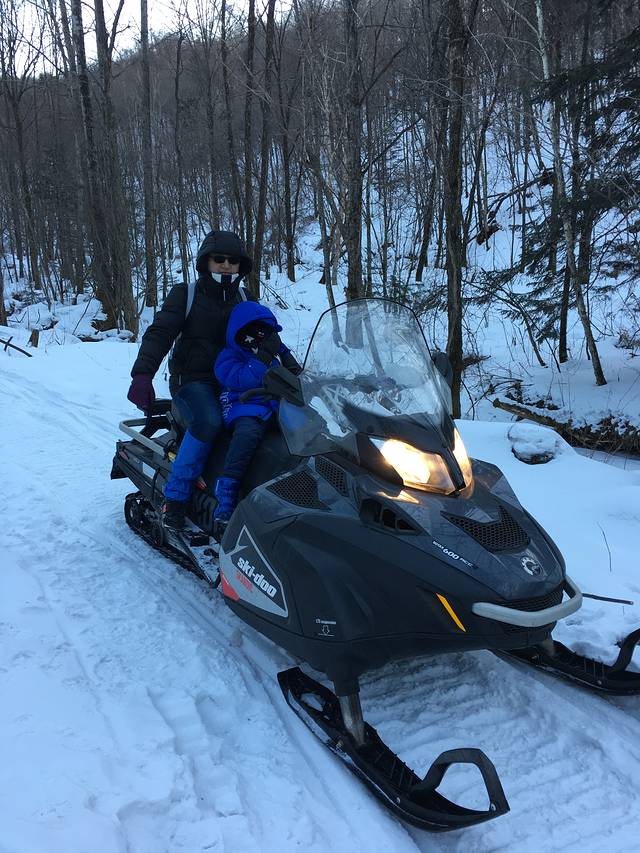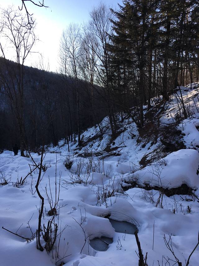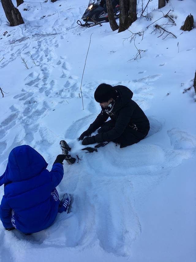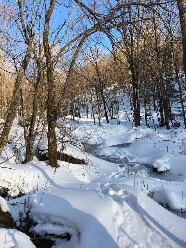 本想去走穿越的线路,因为我们只想看看雪,玩玩雪,客栈老板就建议我们在附近的林场玩就好,比较近。还帮忙联系雪地摩托。