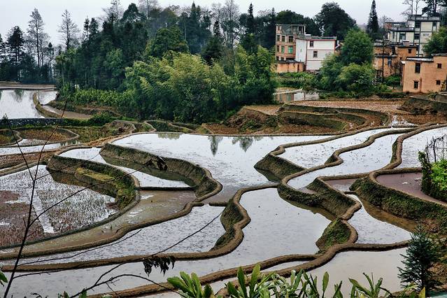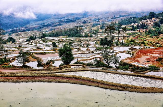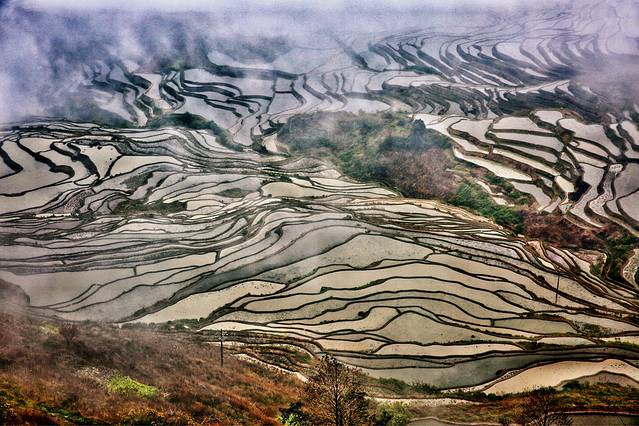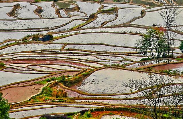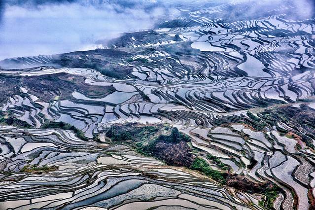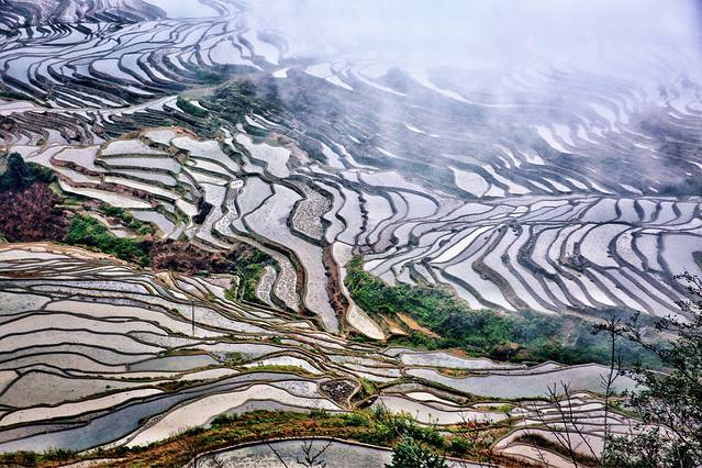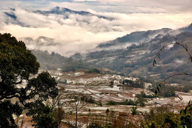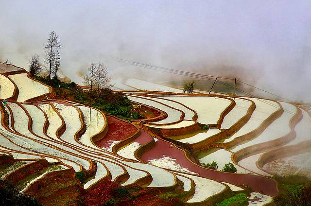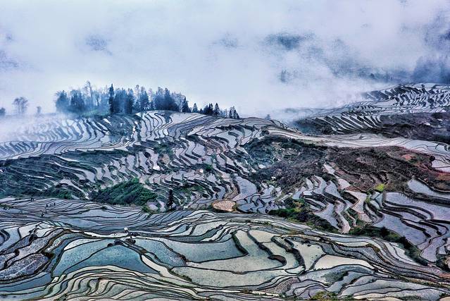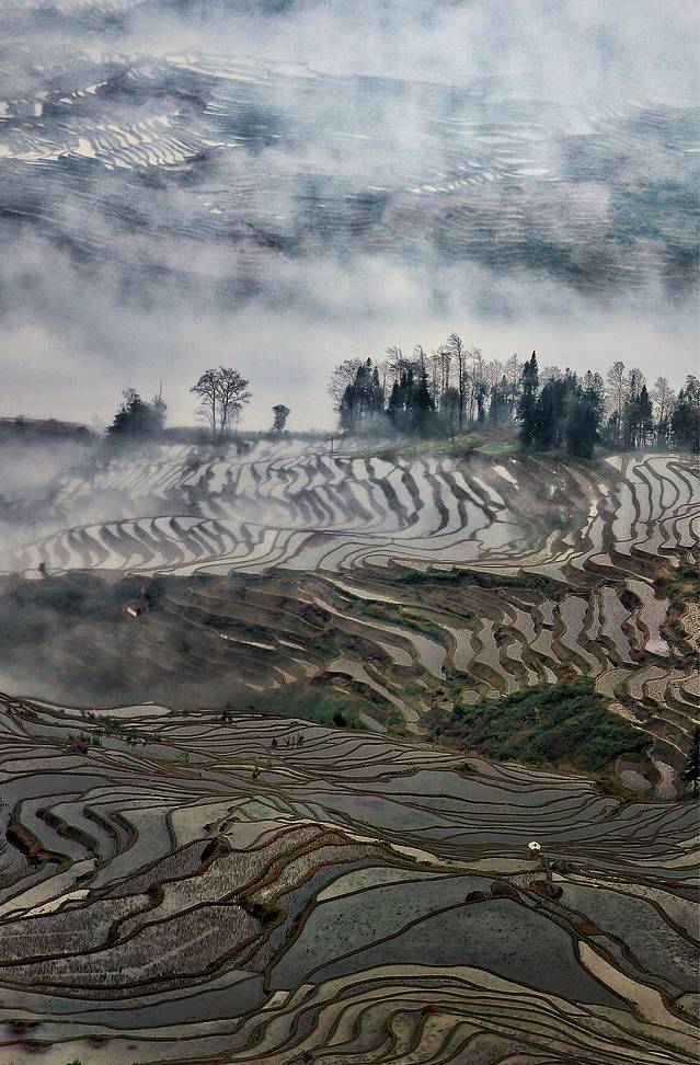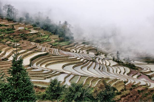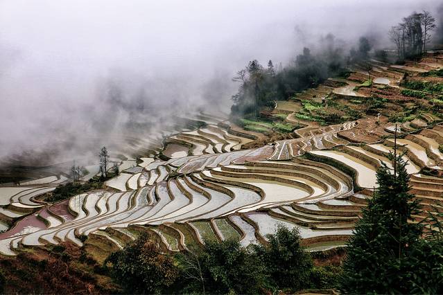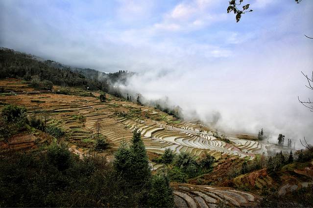 云雾拨弄着五彩斑斓的一面面镜子,透露出大地赐予人类最自然的调色板。