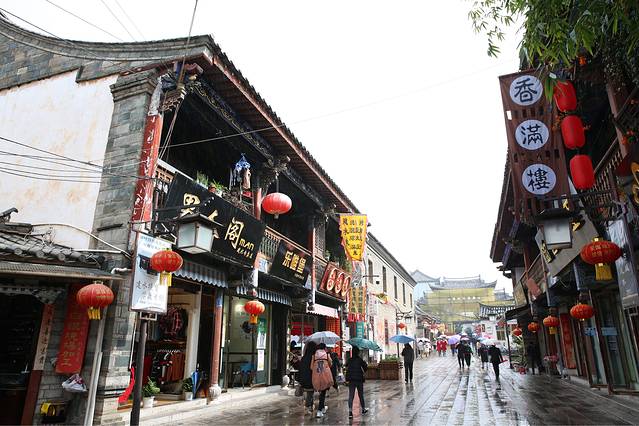 雨滴纷纷,街上没了往日的喧嚣,雨中漫步,多了少有的情调。撑着伞走在保留了原来凹凸不平的石块路上,那份闲情,那种自在,不正是旅行的意义所在吗?