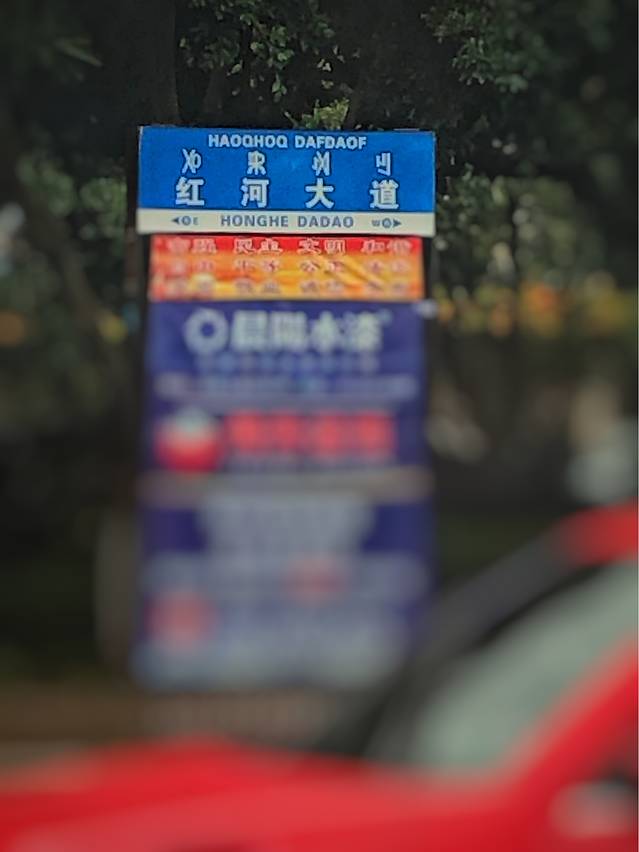 进入红河哈尼族彝族自治州,发现指路牌上有4种文字,哈尼文和彝文特别引人注目。