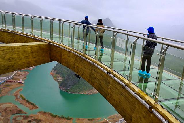广西东兰红水河第一湾风景区,2018年9月30日铜鼓玻璃栈道开鼓迎客,给革命老区又增添了一个新景点。